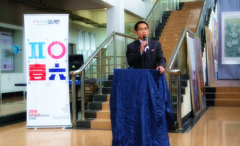 3月9日下午,我院2016届研究生毕业作品展开幕式在集美校区四号教学楼一楼举行,我院领导、研究生导师和全体研究生参加了开幕式。开幕式由吴绍兰副院长主持,院党委林文泰书记和林志强院长分别做了致词。