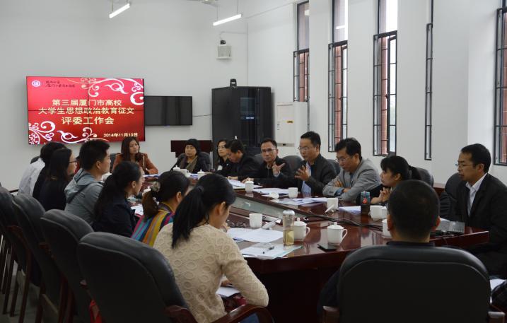 11月13日下午,由厦门市委教育工委指导、厦门市高校辅导员协会主办、我院承办的第三届厦门市高校大学生思想政治教育征文评委会议在我院举行。厦门市高校辅导员协会秘书长王清标书记主持了会议,并根据协会理事工作会确定的工作要求对《征文评审方案》文件进行重点说明,并展开讨论。