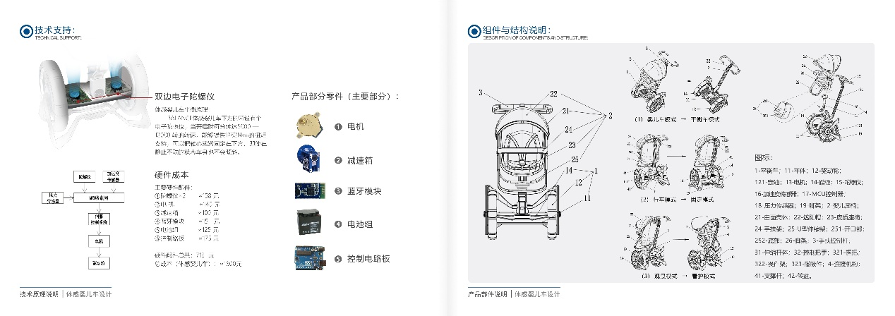 (1)体感婴儿车平衡原理:BALANCE体感婴儿车下方设有电子陀螺仪,当开启时每分钟达5000~12000转的转速,能够提供1762N·m的扭矩支持,可以把轴心紧紧固定在下方,即使在静止不动的状态车身也不会倾斜。
