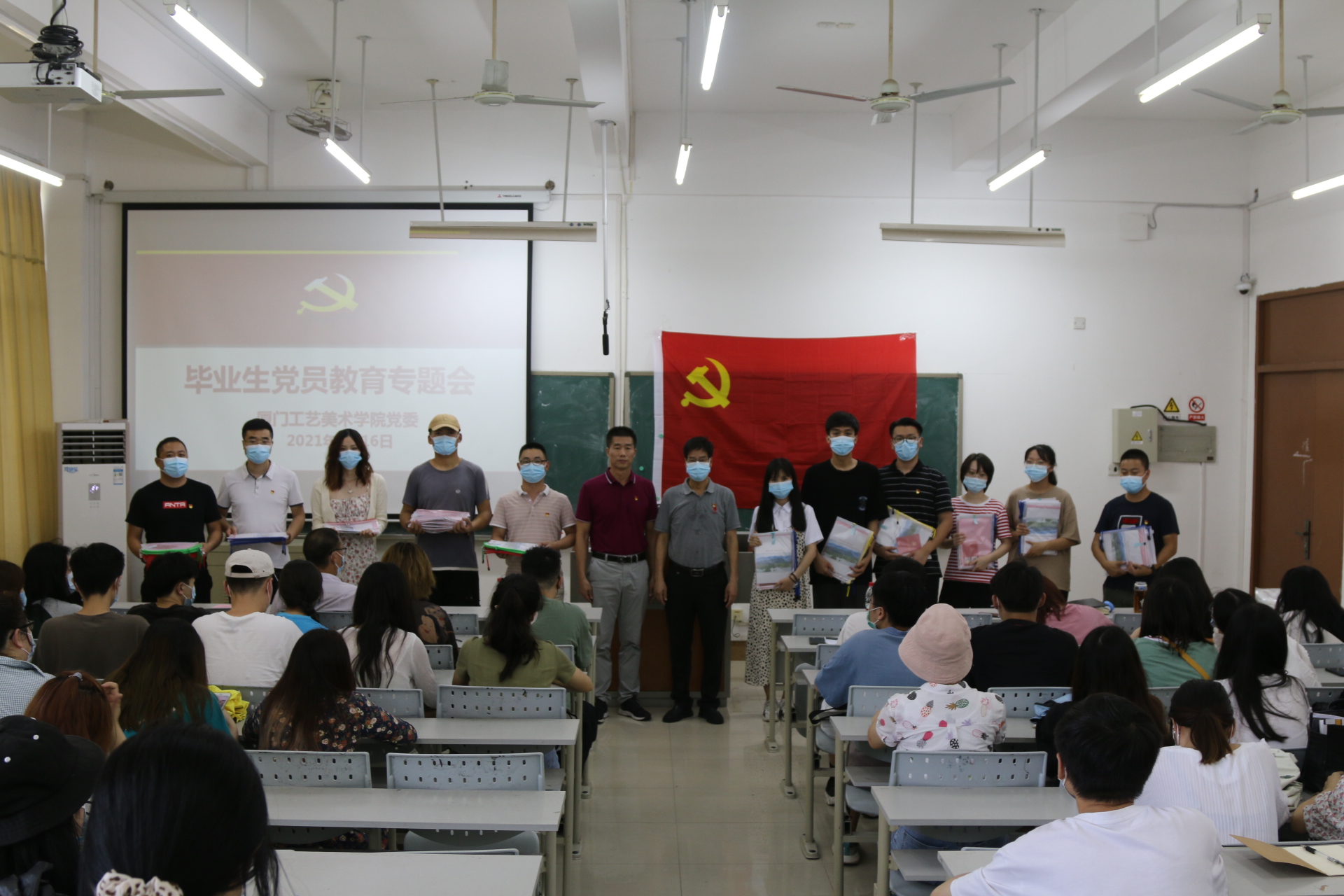 会上,学院党委李礼建书记为毕业生党员发放一份“七一”特别礼物(红色纪念包):一枚党员徽章,一本党章,一份《致毕业生党员的一封信》,一份转移组织关系指导手册,引导毕业生党员进一步增强党员意识,佩戴党员徽章,亮明党员身份,在新的岗位上积极作为,勇于担当,以实际行动为母校争光、为党徽增光。